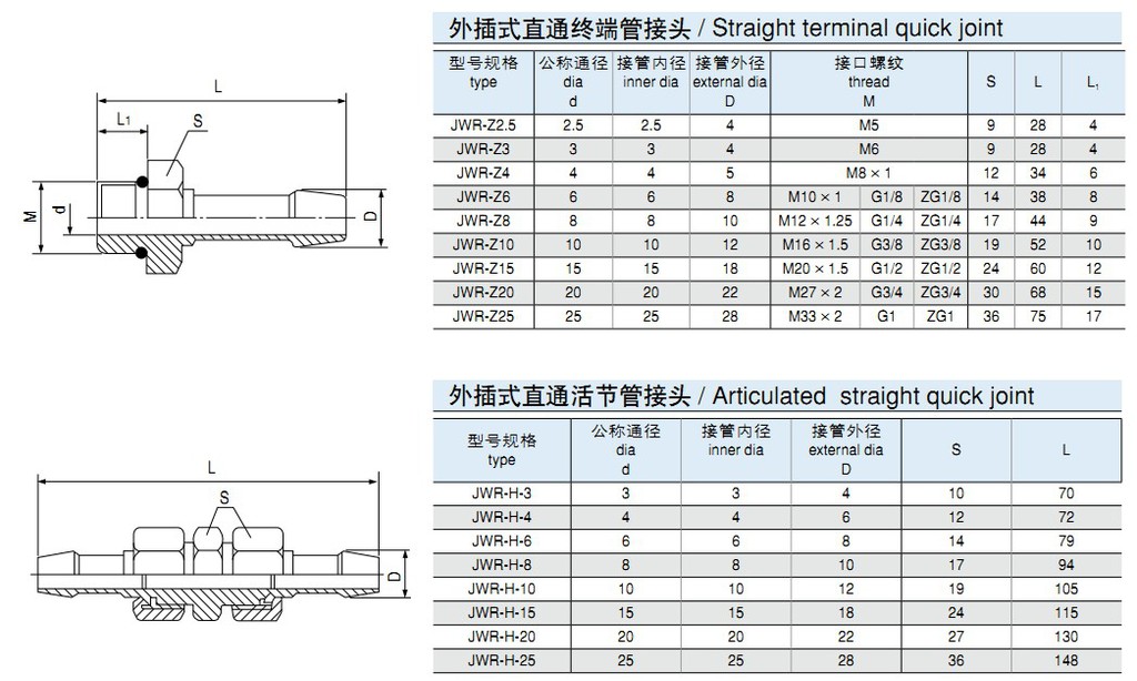 外插式管接頭 JWR系列,可非標(biāo)來(lái)樣定做
