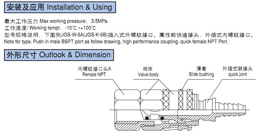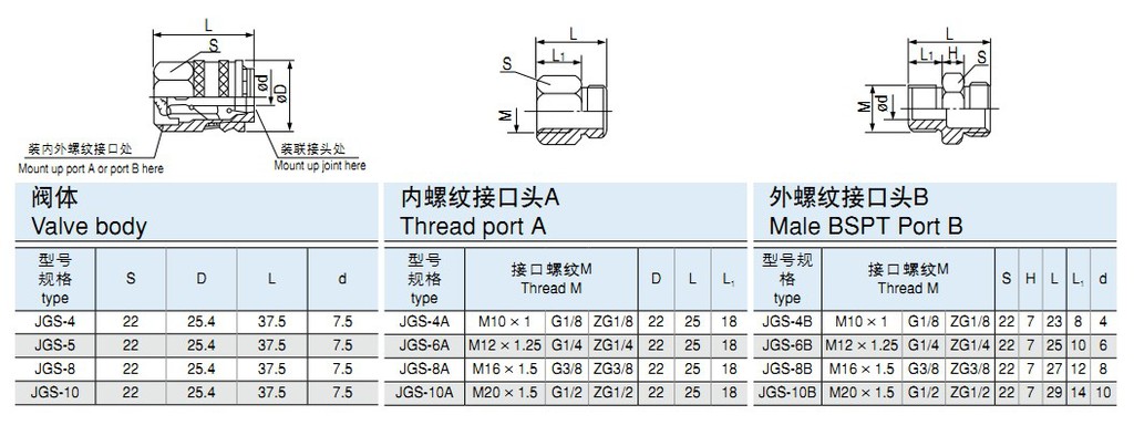 高性能快速接頭 JGS系列,可非標(biāo)來(lái)樣定做
