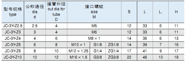 一、JC系列插入式管接頭,適用于連接硬質、半硬質尼龍管、塑料管,最大工作壓力為1.0MPa。該系列管接頭安裝方便,密封可