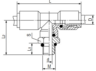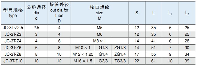 ①:插入式三通終端管接頭公稱通徑 Ø6MM JC-3T-Z6 M10×1