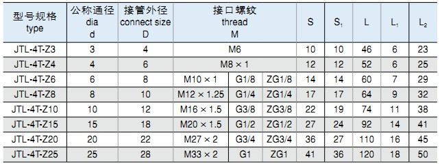 一、JT系列卡套式管接頭適用于有色金屬管,編織尼龍管的連接。最大工作壓力為1.0MPa