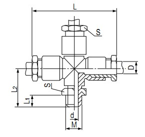 ②:卡套式三通終端變徑管接頭 公稱(chēng)通徑 Ø6MM B=8MM C=4MM JT-3T-Z6-8-4 M10×1