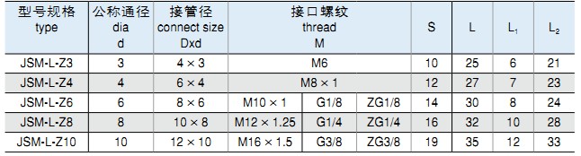 一、JSM系列鎖母式管接頭,適用于連接尼龍管、塑料管,最大工作壓力為1.0MPa。該系列管接頭具有使用方便,安裝牢固等優(yōu)點(diǎn)。