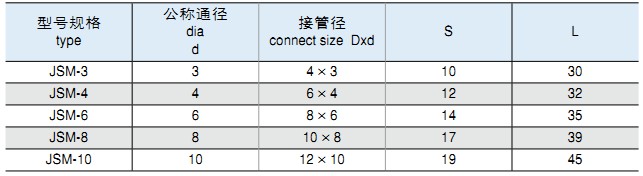 一、JSM系列鎖母式管接頭,適用于連接尼龍管、塑料管,最大工作壓力為1.0MPa。該系列管接頭具有使用方便,安裝牢固等優(yōu)點。