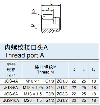 型號規(guī)格說明,下圖例JGS-W-6A(JGS-K-6B)插入式外螺紋接口。高性能快速接頭,外插式內(nèi)螺紋接口。