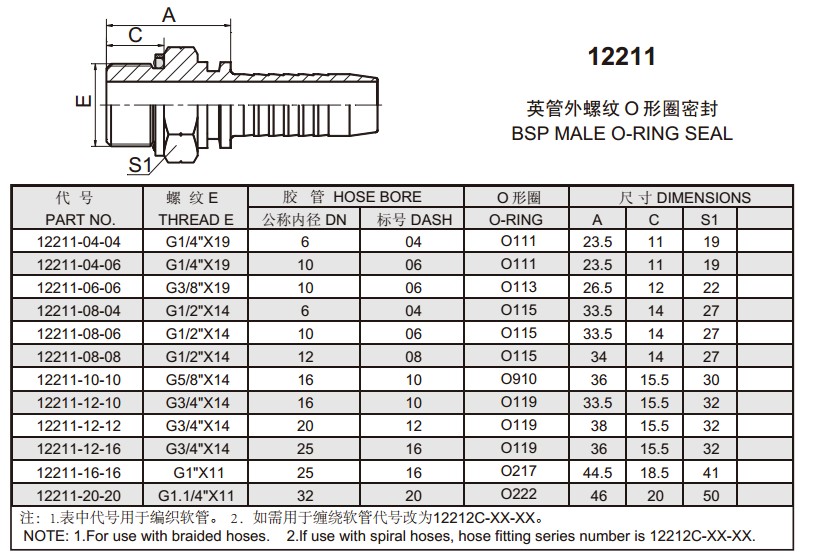 12211 英管外螺紋O形圈密封