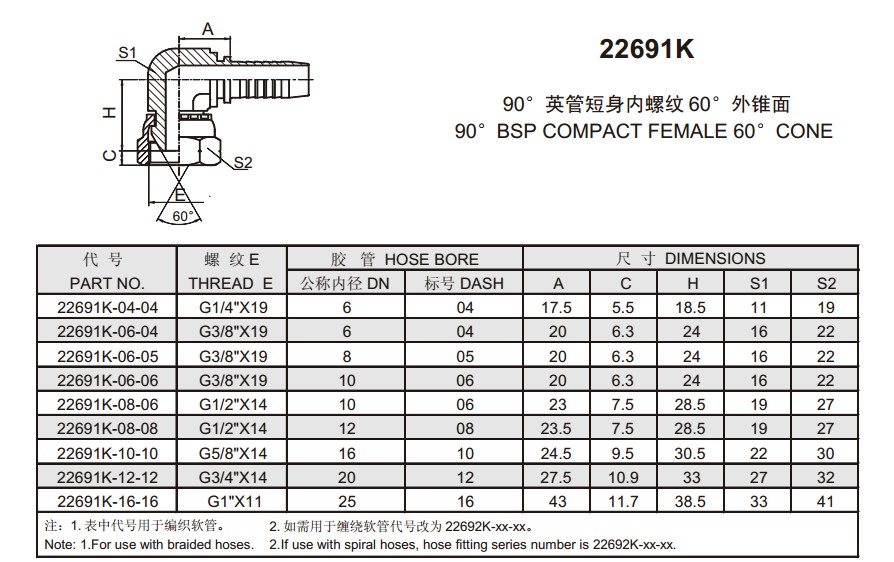 22691K 90°英管短身內(nèi)螺紋60°外錐面