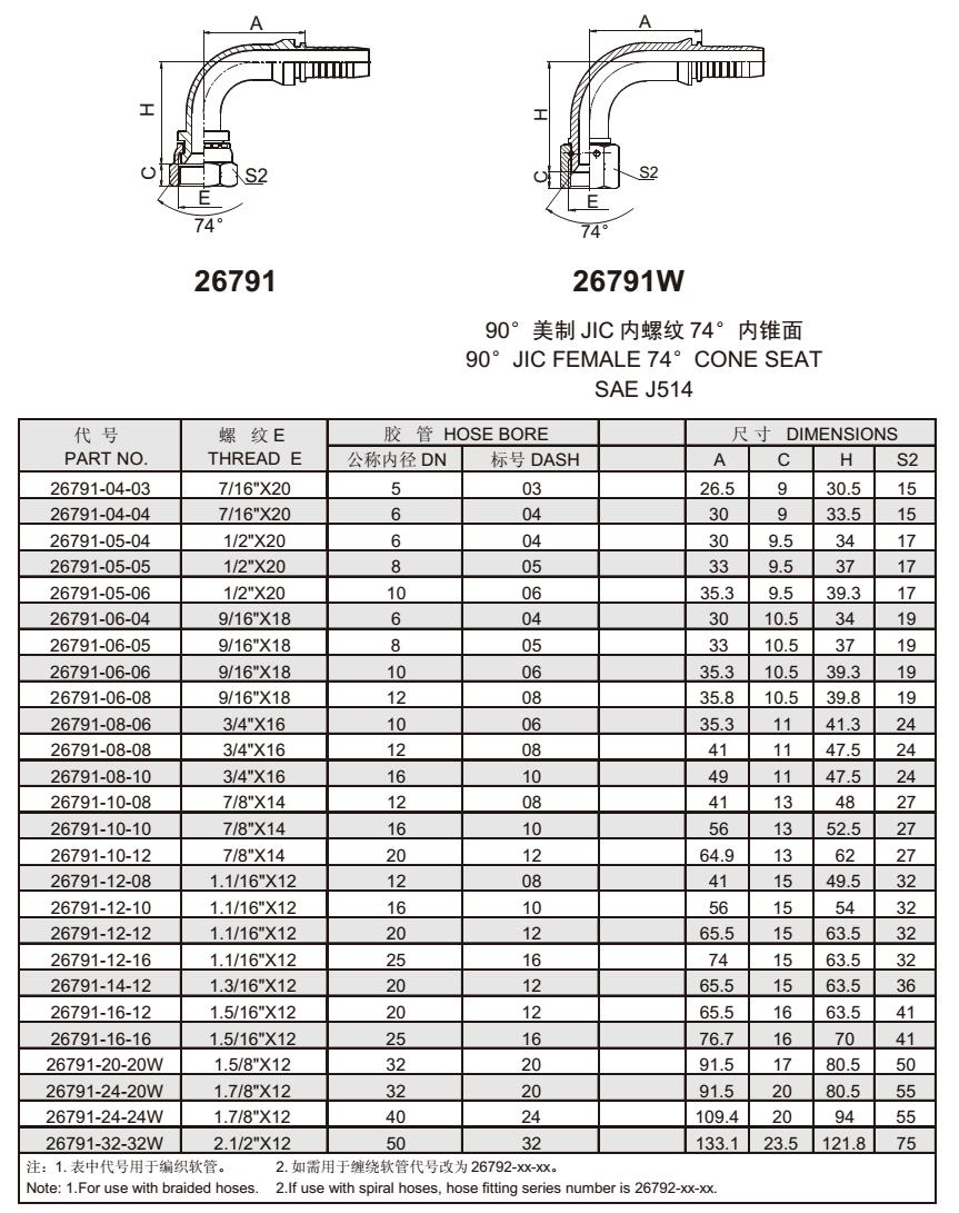 26791 90°美制JIC內(nèi)螺紋74°內(nèi)錐面