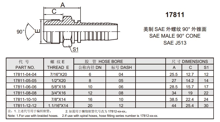17811 美制SAE外螺紋90°外錐面