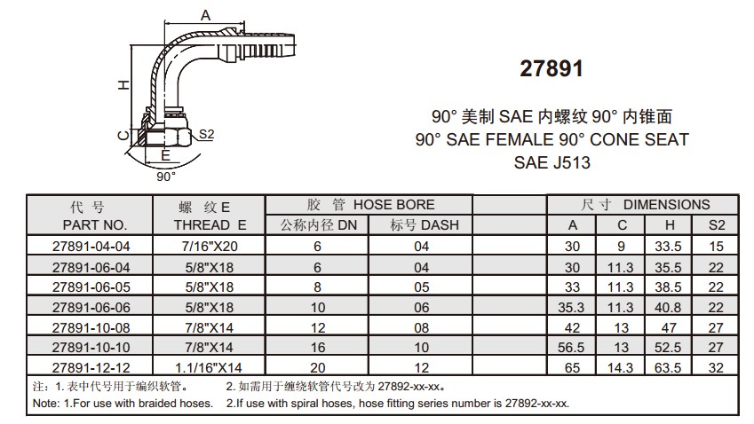 27891 90°美制SAE內(nèi)螺紋90°內(nèi)錐面