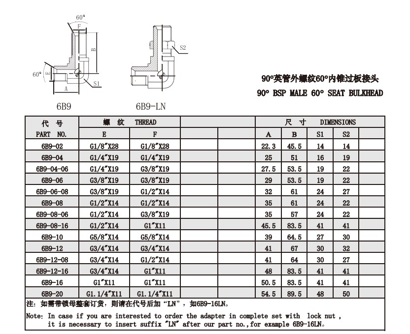 6B9 6B9-LN 90°英管外螺紋60°內(nèi)錐過板接頭