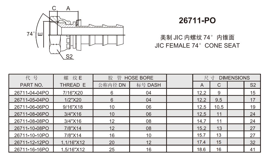 26711-PO 美制JIC內(nèi)螺紋74°內(nèi)錐面