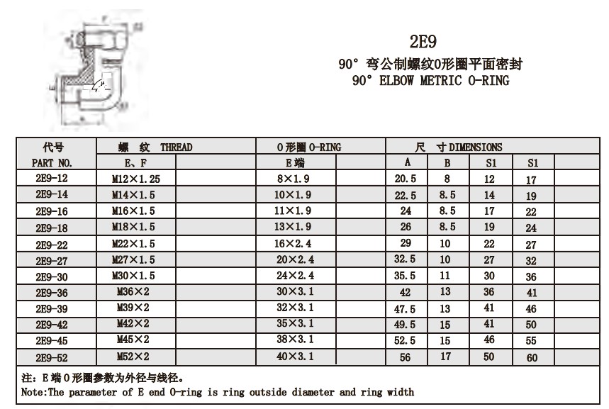 2E9 90°彎公制螺紋0形圈平面密封