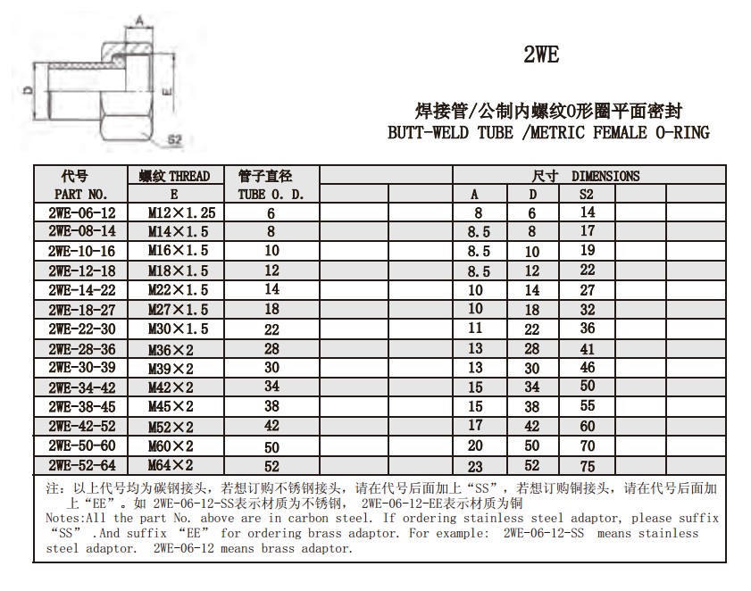 2WE 焊接管/公制內(nèi)螺紋O形圈平面密封