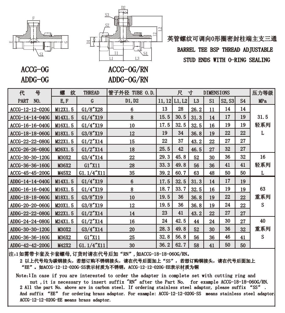 ACCG-OG ADDG-OG 英管螺紋可調(diào)向0型圈密封柱端主支三通