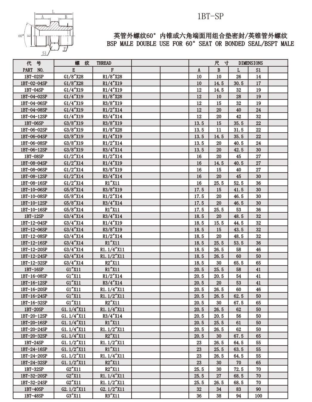 1BT-SP 英管外螺紋60°內(nèi)錐或六角端面用組合墊密封/英錐管外螺紋