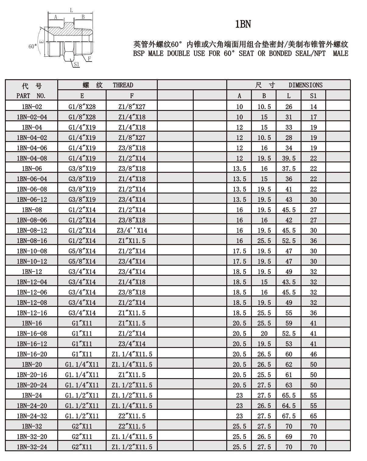 1BN 英管外螺紋60°內(nèi)錐或六角端面用組合墊密封/美制布錐管外螺紋