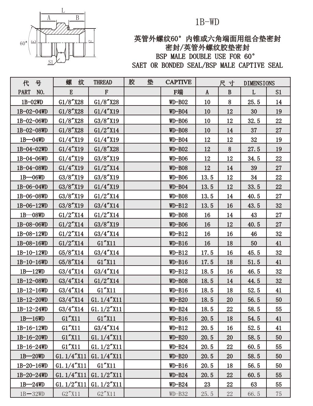 1B-WD 英管外螺紋60°內(nèi)錐或六角端面用組合墊密封 密封/英管外螺紋膠墊密封