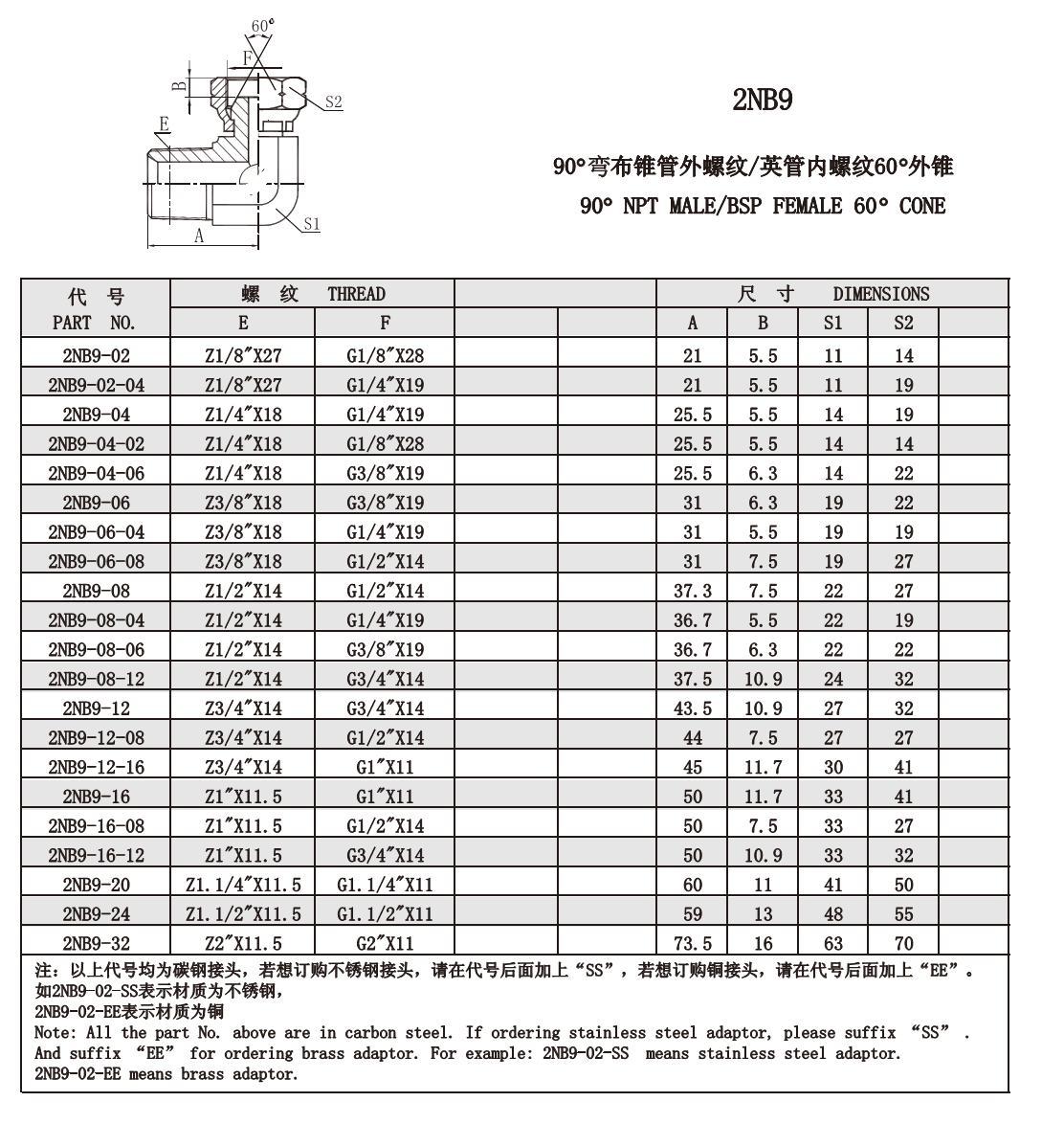 2NB9 90°布錐管外螺紋/英管內(nèi)螺紋60°外錐