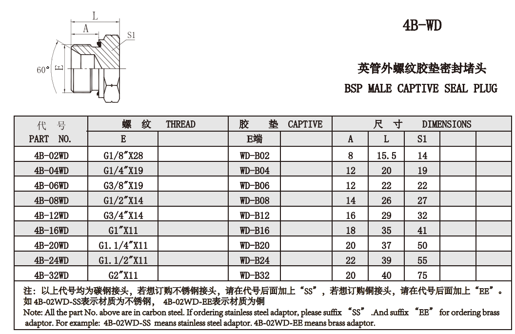 4B-WD 英管外螺紋膠墊密封堵頭