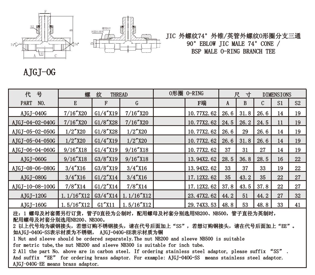 AJGJ-OG JIC 外螺紋74°外錐/英管外螺紋O形圈分支三通