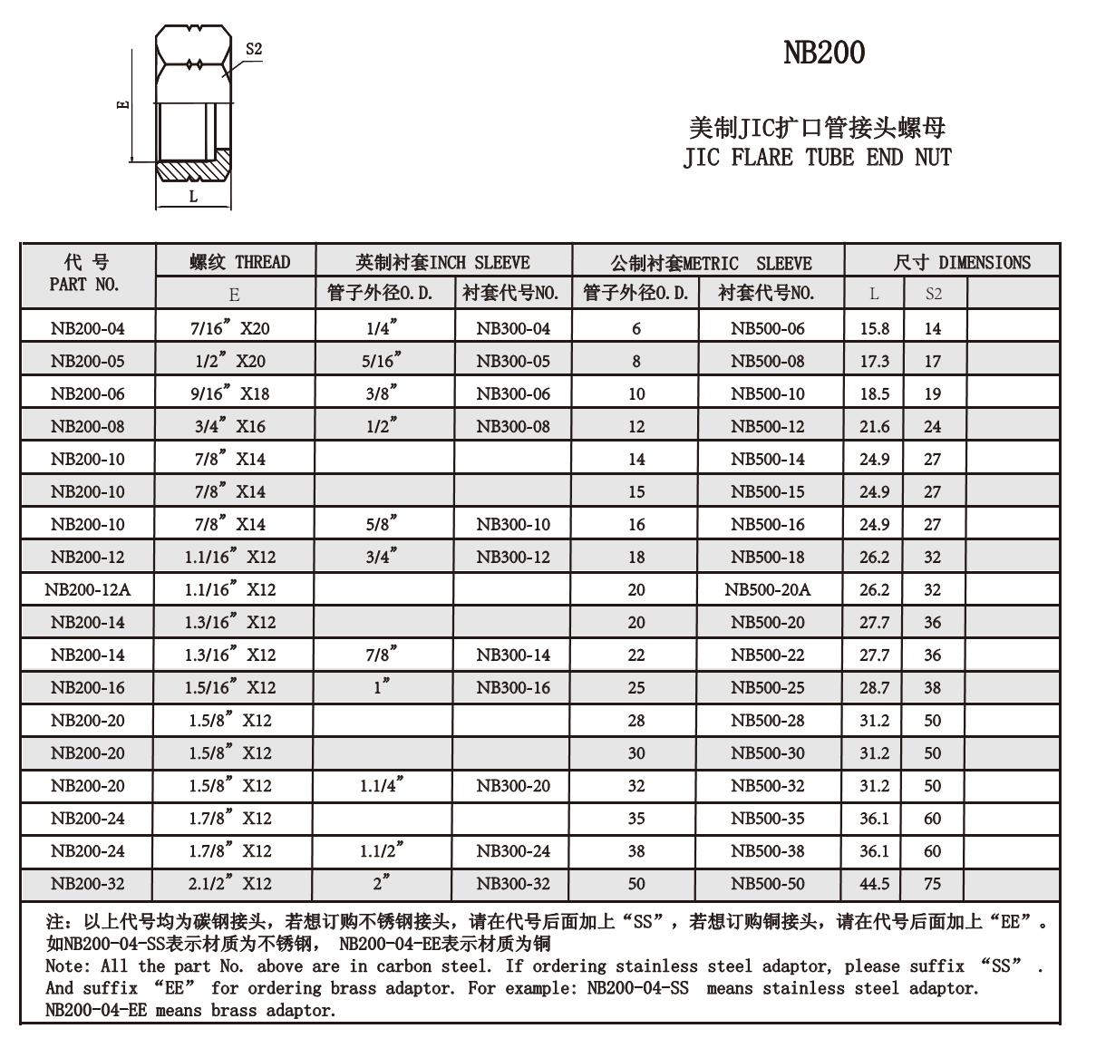 NB200 美制JIC擴(kuò)口管接頭螺母