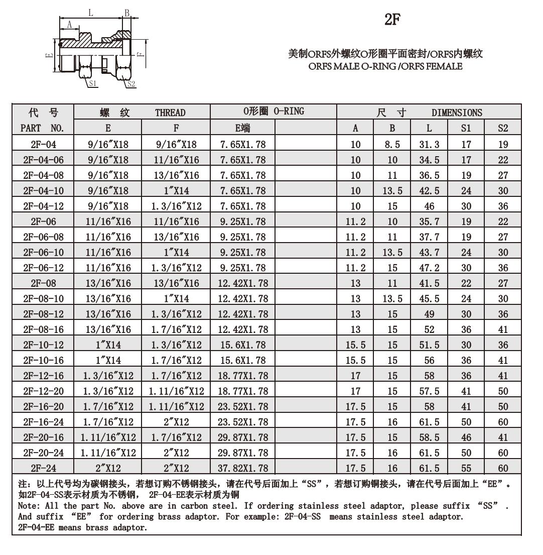 2F 美制ORFS外螺紋O形圈平面密封/ORFS內(nèi)螺紋