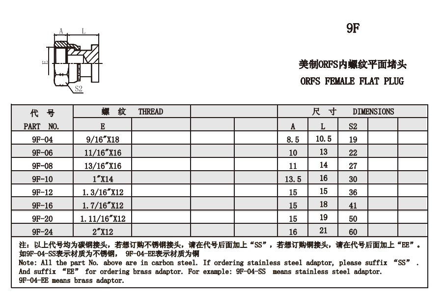 9F 美制ORFS內(nèi)螺紋平面堵頭
