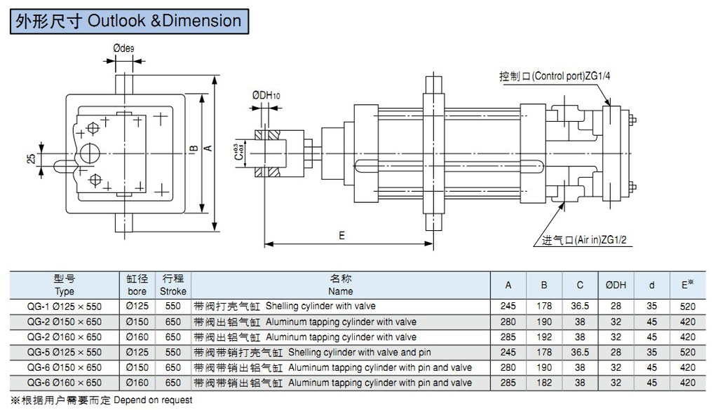QG系列鋁行業(yè)專用氣缸分為六個品種QG-1~QG-6,針對鋁廠電解槽打殼和出鋁的不同需要,可酌情選用。