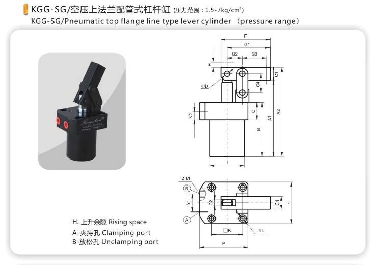 KGG-SG/空壓上法蘭配管式杠桿缸