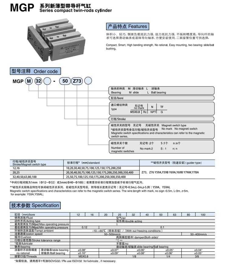 新薄型帶導桿氣缸 MGP系列,可非標定制氣缸來圖來樣訂做