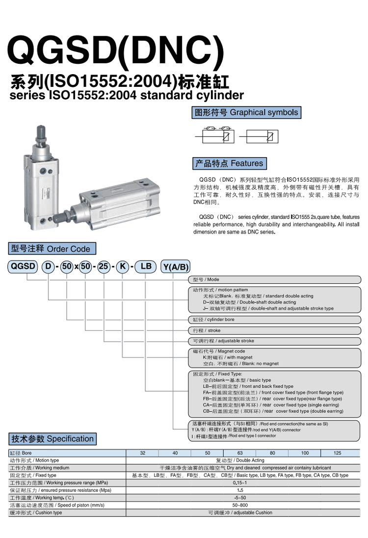 QGSD系列(德)標(biāo)準(zhǔn)氣缸是歐洲型輕型氣缸,結(jié)構(gòu)緊湊,安裝形式和尺寸符合ISO1552國(guó)際標(biāo)準(zhǔn),具有工作可靠,耐久性好,互換性強(qiáng)的特點(diǎn)。ISO15552國(guó)標(biāo)氣缸可非標(biāo)定制VDMA氣缸非標(biāo)氣缸生產(chǎn)