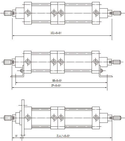 QGS系列氣缸在結(jié)構(gòu)要素尺寸、安裝形式和尺寸方面都