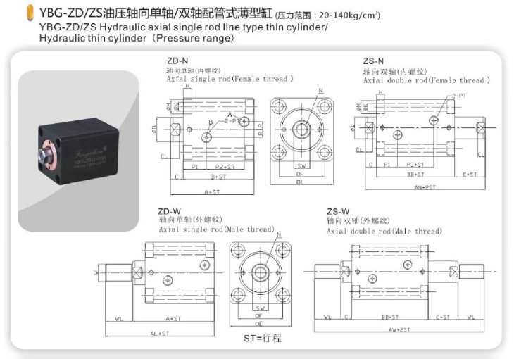 YBG-ZD/ZS油壓軸向單軸/雙軸配管式薄型缸