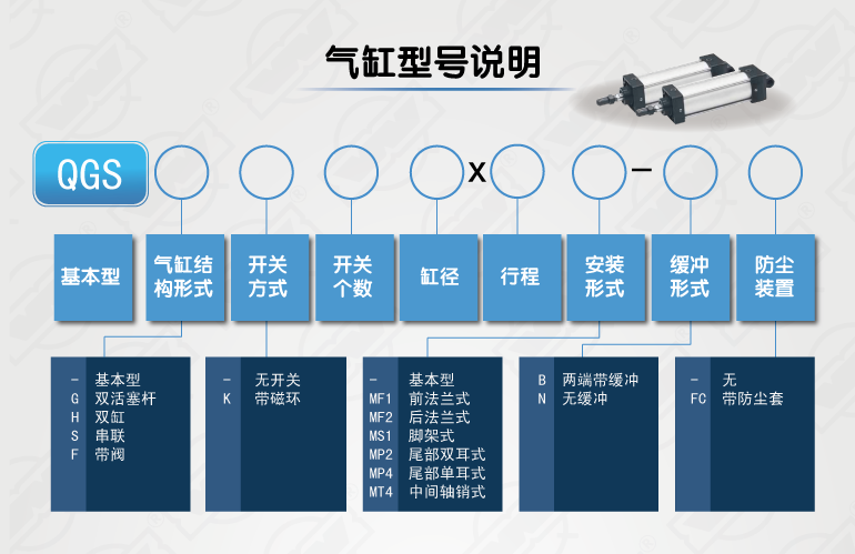 1.有油潤滑氣缸;2.無油潤滑氣缸。