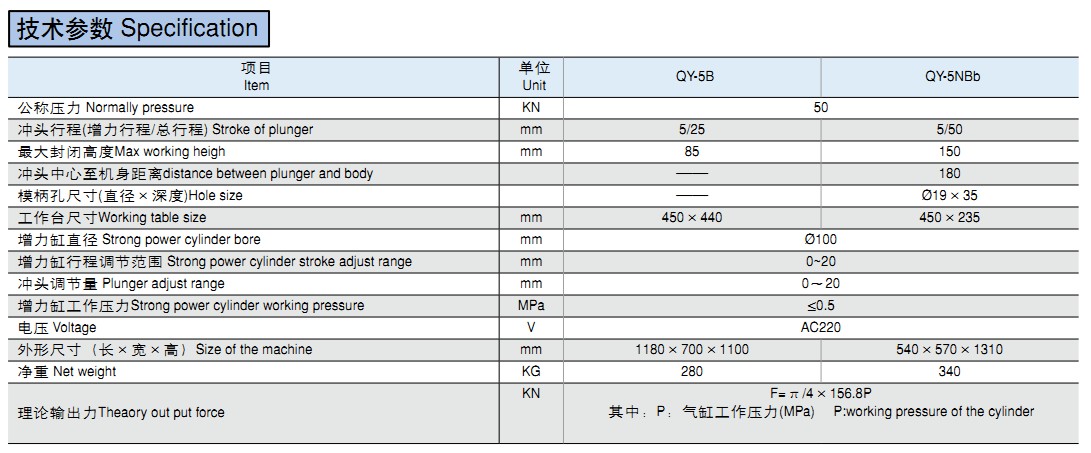 QY-5B為三導(dǎo)柱機(jī)架,5NBb為焊接機(jī)身。