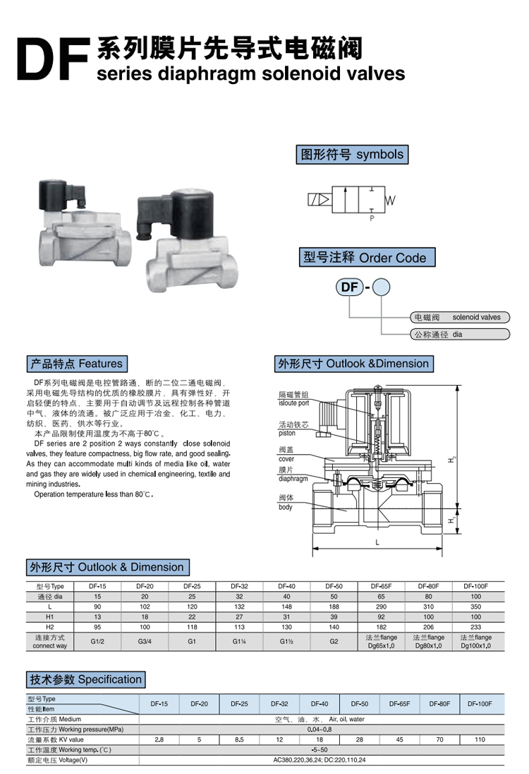 DF系列 膜片先導(dǎo)式電磁閥