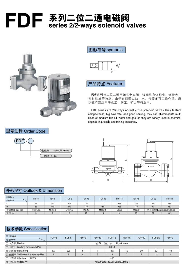 關(guān)鍵詞:常閉式電磁閥 FDF 二位二通