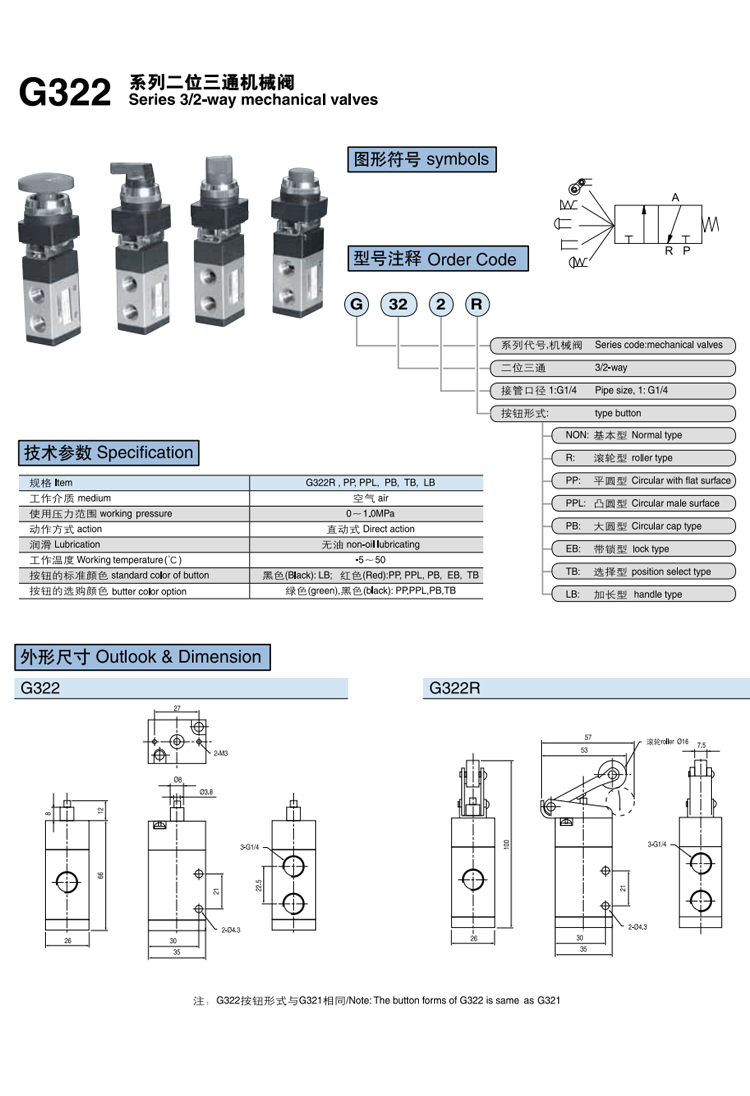 機械閥 G322系列 二位三通,可提供定制