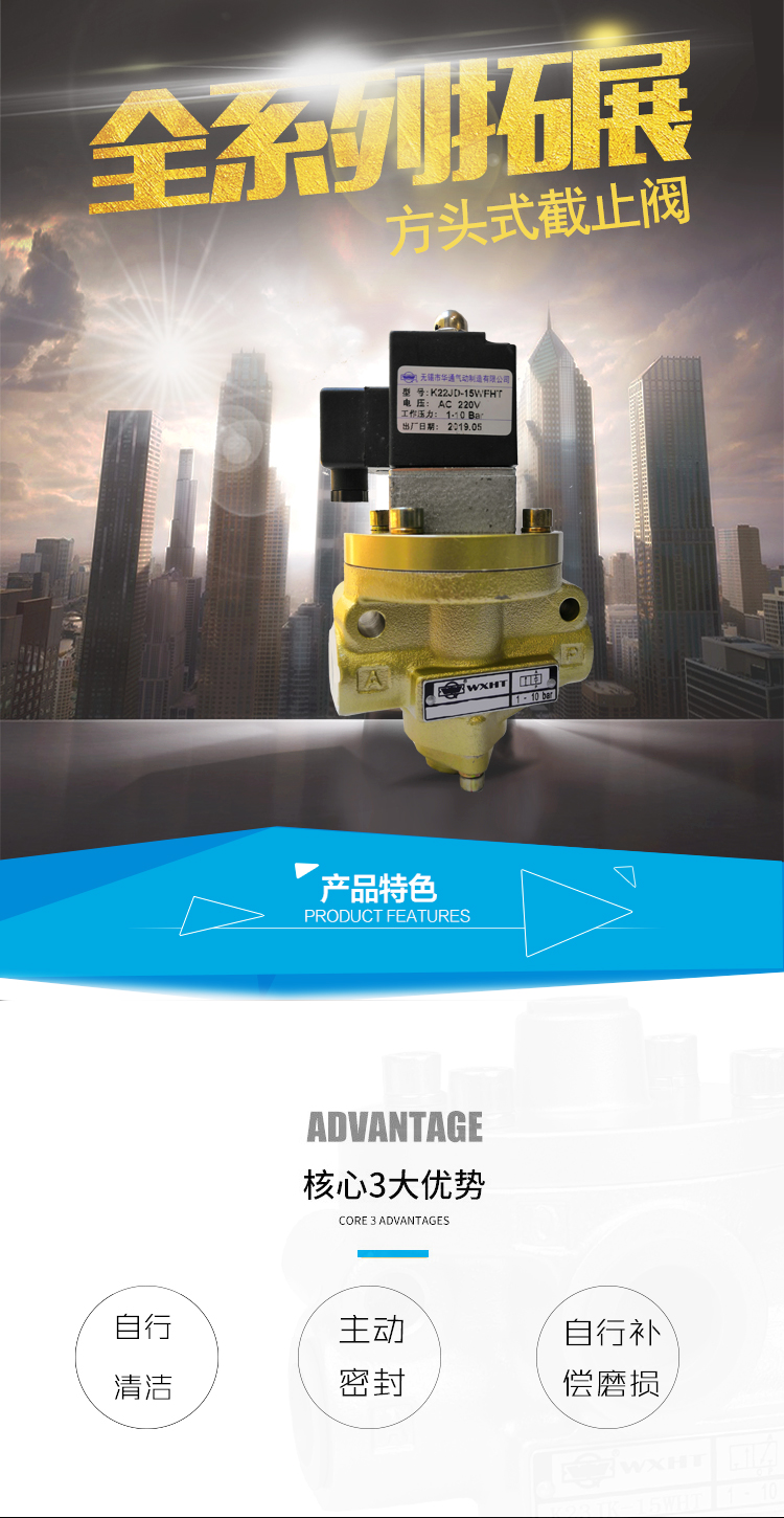 截止式電磁閥K22JD-WF系列二位二通,可提供定制方頭無錫單聯(lián)閥