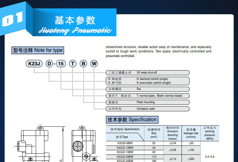 華通氣動(dòng) 板接 截止式 換向電磁閥 K23J-BW系列 兩位三通,可提供定制