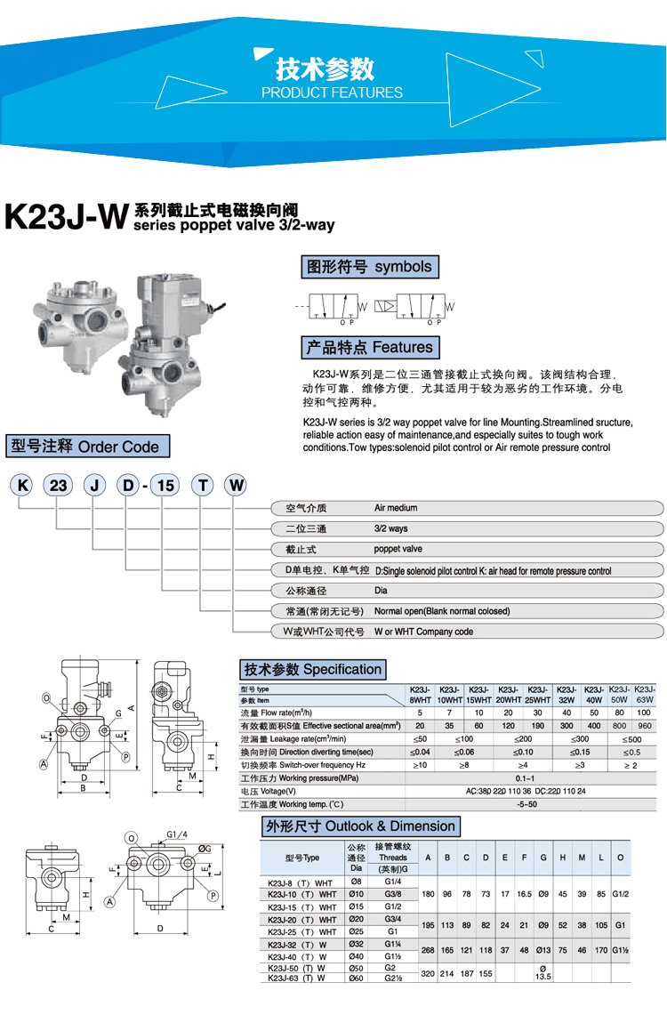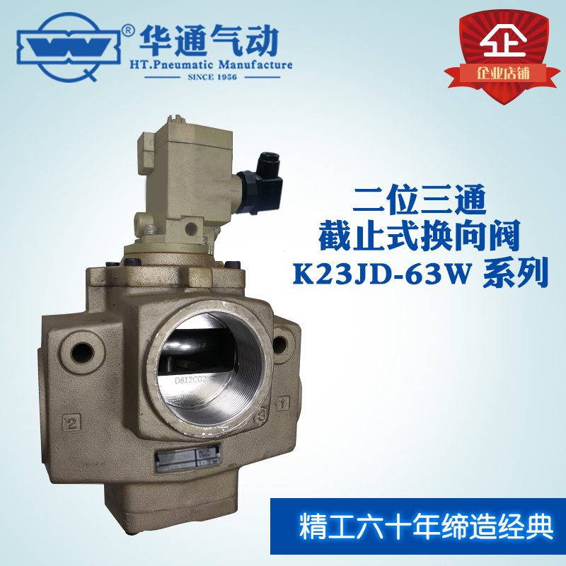 華通氣動K23JD-50-63WHT二位三通截止式電控換向閥電磁閥K23JD-W單聯(lián)大口徑2寸2-1/2寸