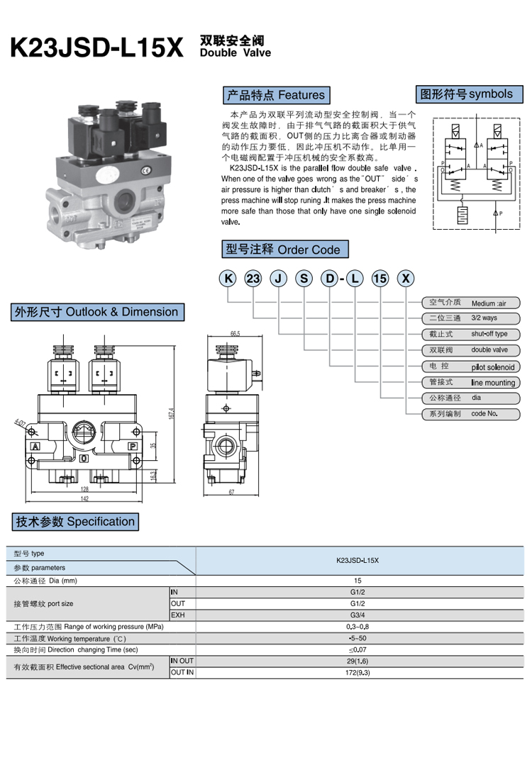 雙聯(lián)安全閥K23JSD-L15L-G/R系列斷電保護(hù)沖床離合器雙聯(lián)閥壓力機(jī)用