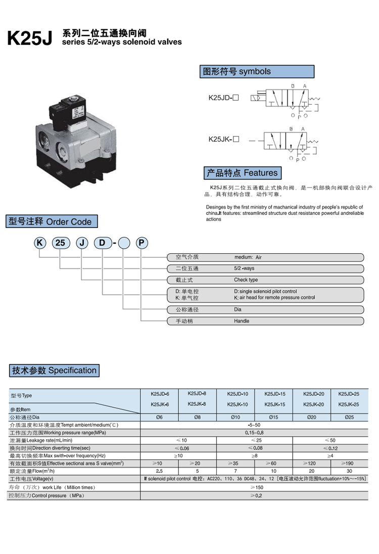 標(biāo)簽:截止式換向閥 K25J 二位五通 老KJ型