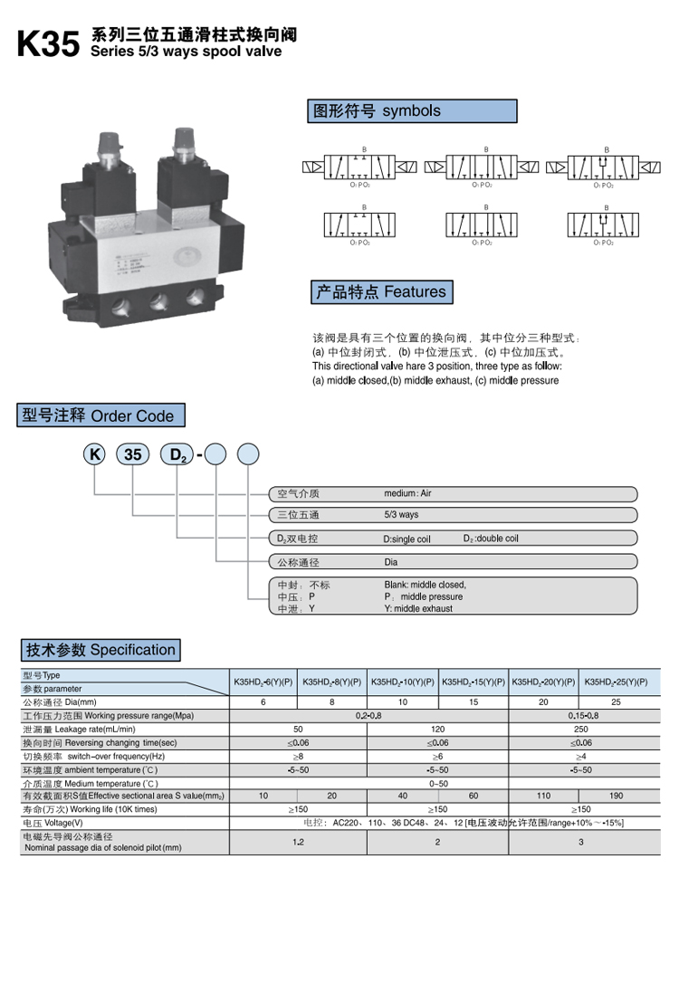 電控/氣控?fù)Q向閥 K35D系列 三位五通,可提供定制